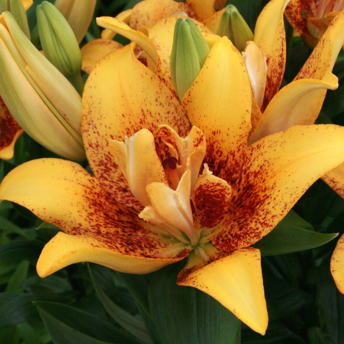 Originari din Asia, crinii sunt plante bulbous cu o istorie bogata, fiind apreciati pentru frumusetea si parfumul lor inconfundabil. Crinii "Double Nugget" sunt perfecti pentru borduri, ghivece sau ca flori taiate.