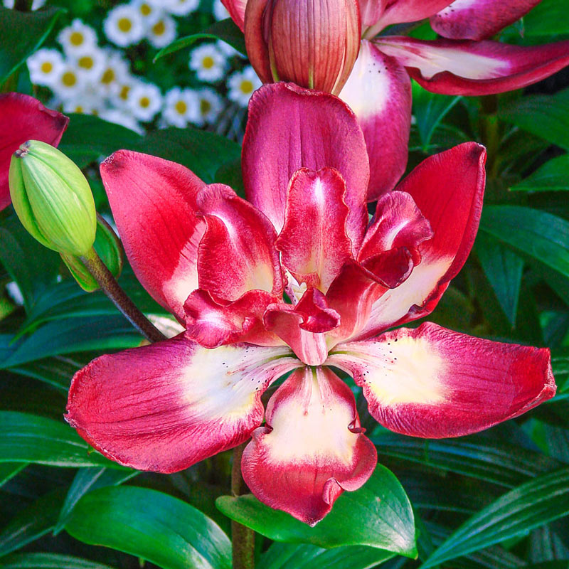 Crinii Double Sensation sunt o adevarata senzatie in orice gradina. Cu o inaltime de pana la 200 cm, acesti crini produc flori mari, duble, cu petale delicate si culori vibrante, care creeaza un efect vizual spectaculos. Prefera locurile insorite si solul umed, dar bine drenat. Udarea regulata este esentiala, mai ales in perioadele secetoase.