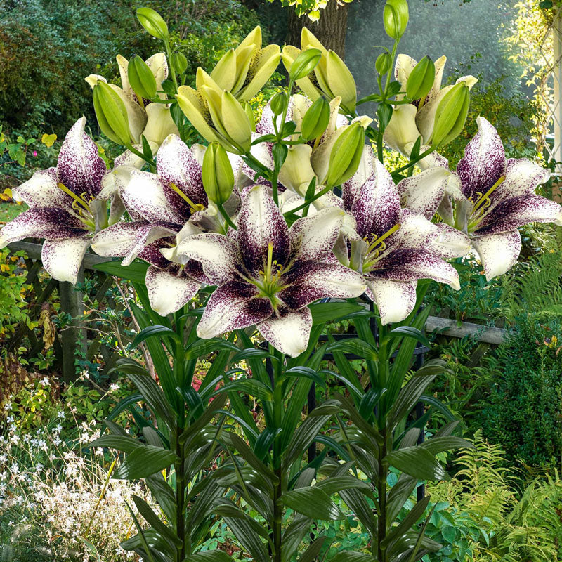 Originari din zonele temperate, crinii Easy Spot sunt o planta perena cu o istorie indelungata, fiind apreciati pentru florile lor unice si elegante. Florile lor mari, cu petale albe-crem punctate cu violet, ii fac o alegere populara pentru gradini moderne. Cu o ingrijire minima, crinii Easy Spot vor infrumuseta gradina ta vara de vara.