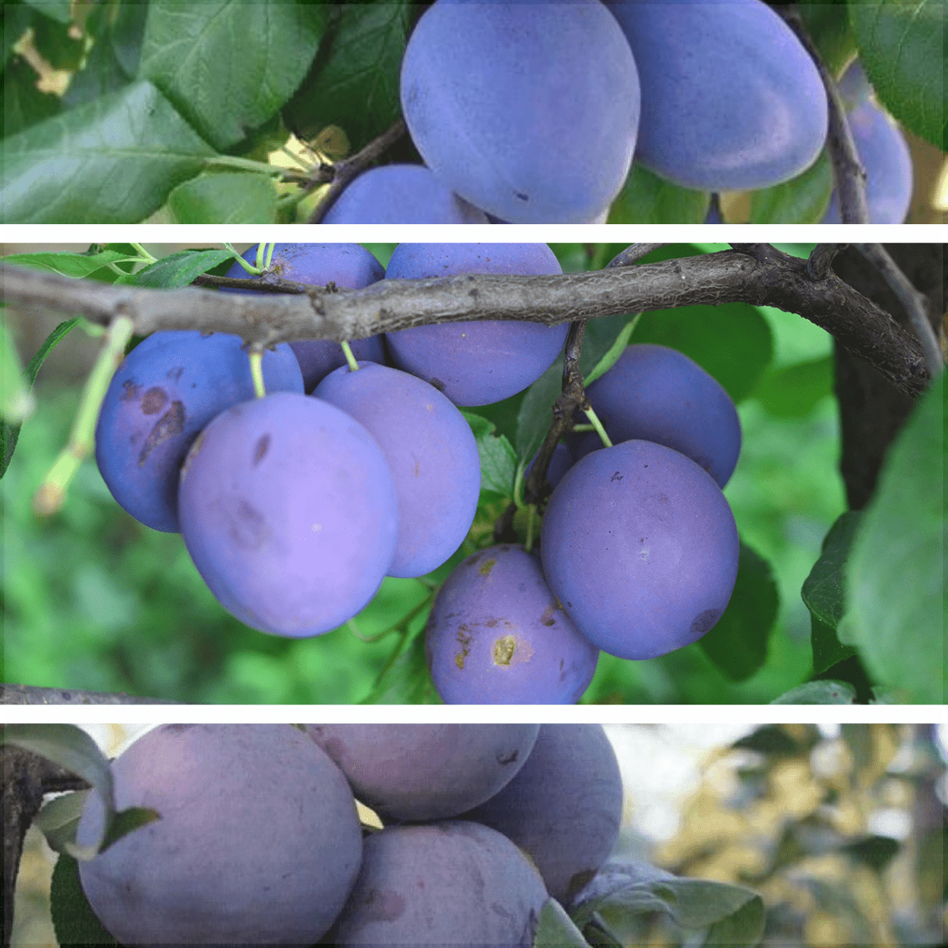 Pomul de vigoare mijlocie, cu coroana ramificata, partial autofertil, bun polenizator pentru alte soiuri. Fructul este mare, de forma eliptica, de culoare albastru inchis cu multa pruina violacee. Pulpa este de culoare galbena, suculenta, cu gust dulce – acidulat, neaderenta la sambure.